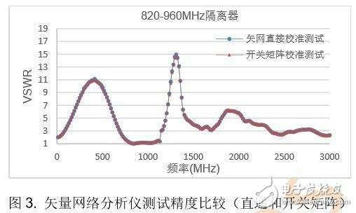 经过校准后,开关矩阵和测试电缆成为了矢量网络分析仪的一部分,开元网页版-开元(中国)针对铁氧体隔离器作为被测件进行了比较测试,结果如图3所示。
